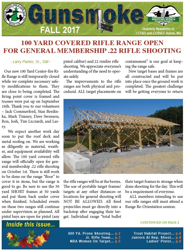In order to cover the expense of numerous range safety improvements made this past year, membership fees will increase for the first time in five years. However, if renewals are received before 12/31/17, the fee will remain at the 2017 rate for 2018.